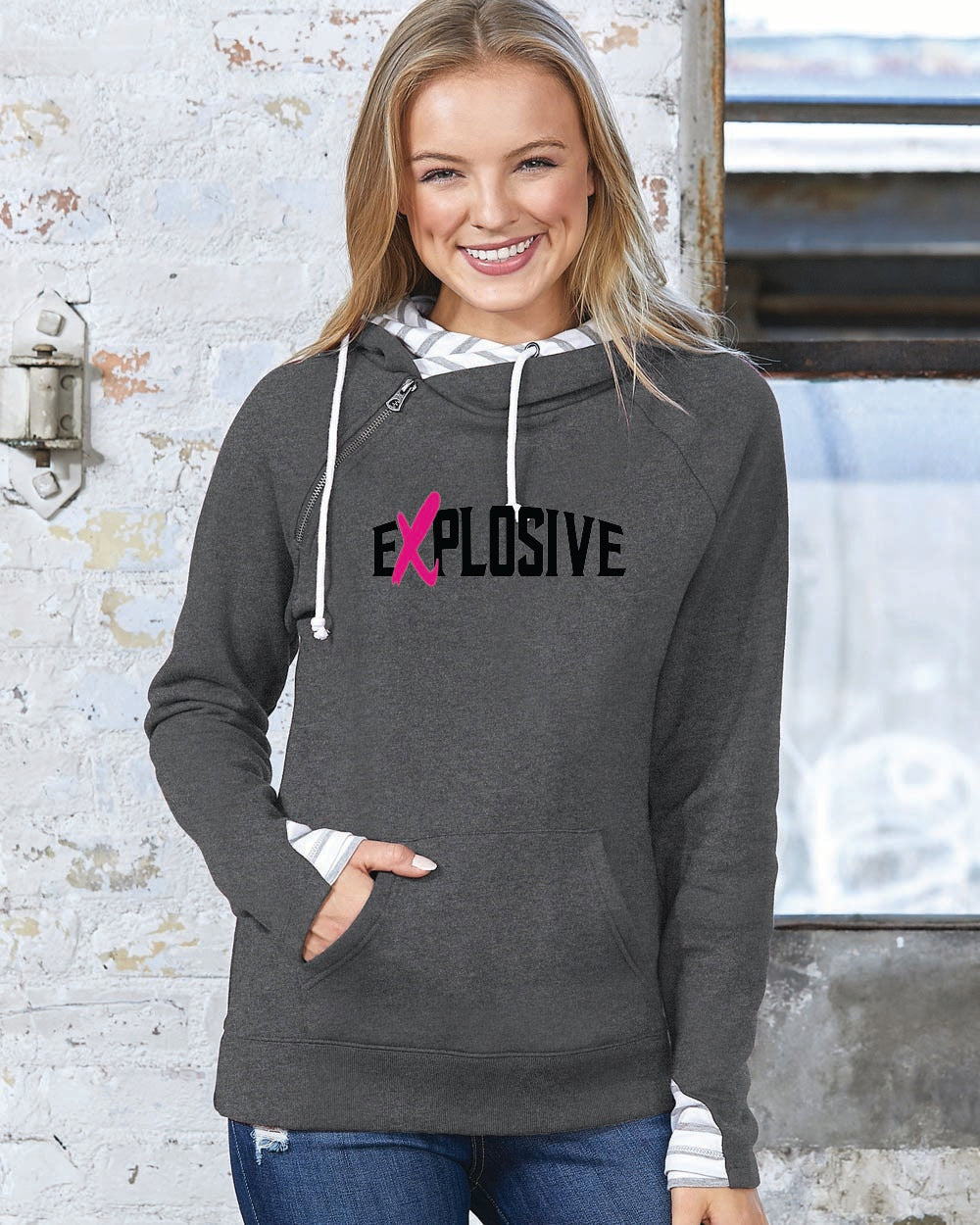 Explosive on gray side zip
