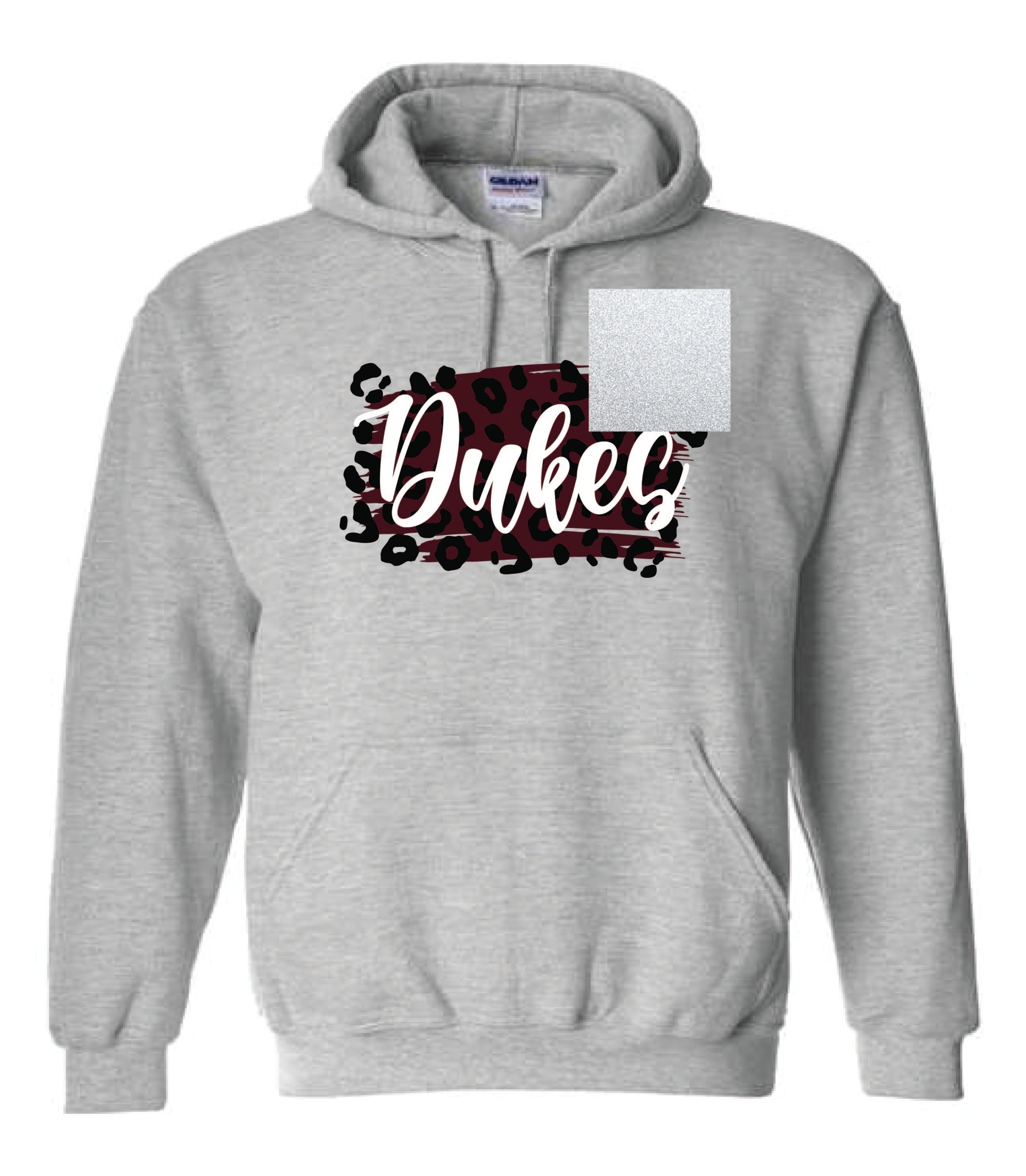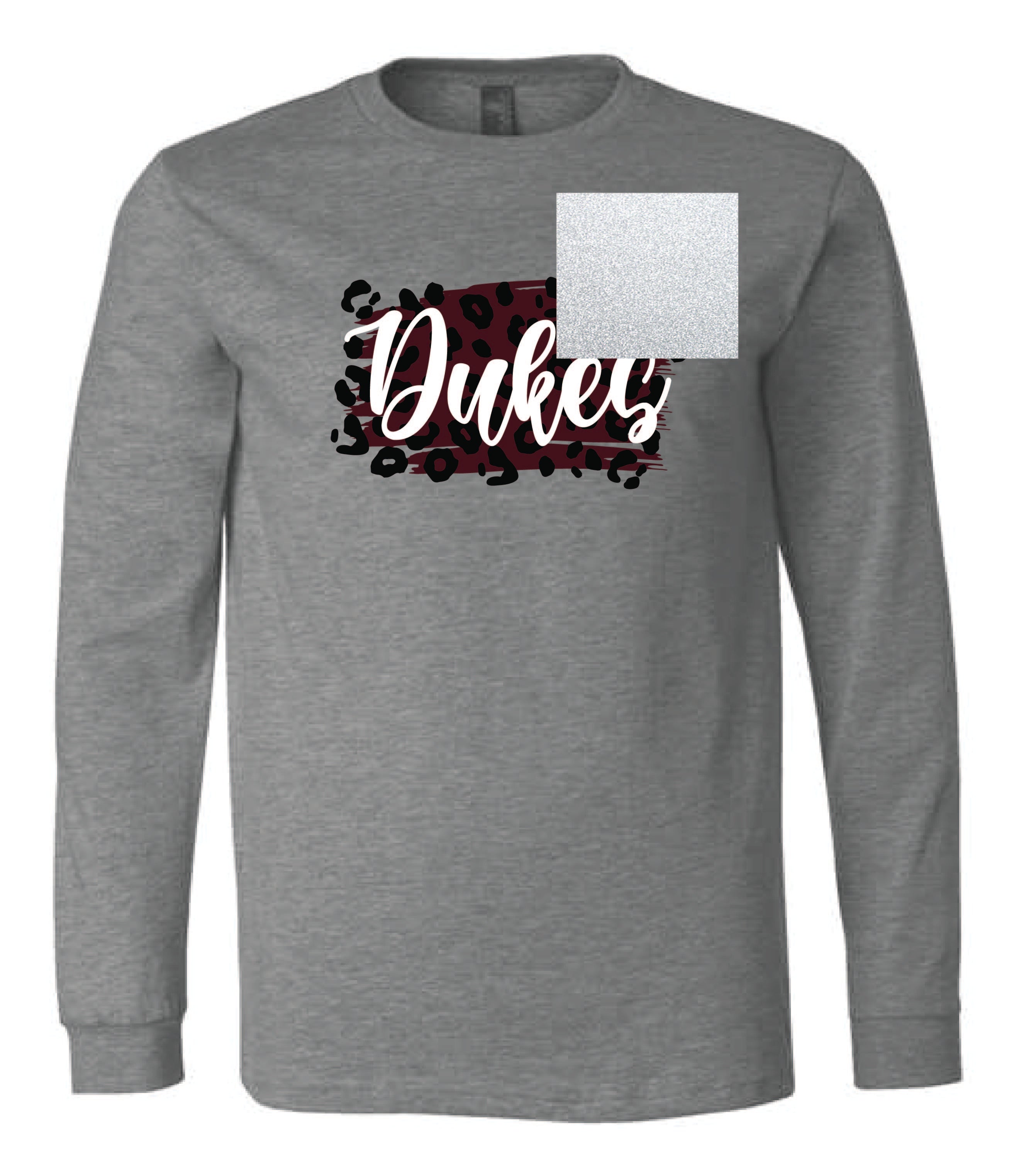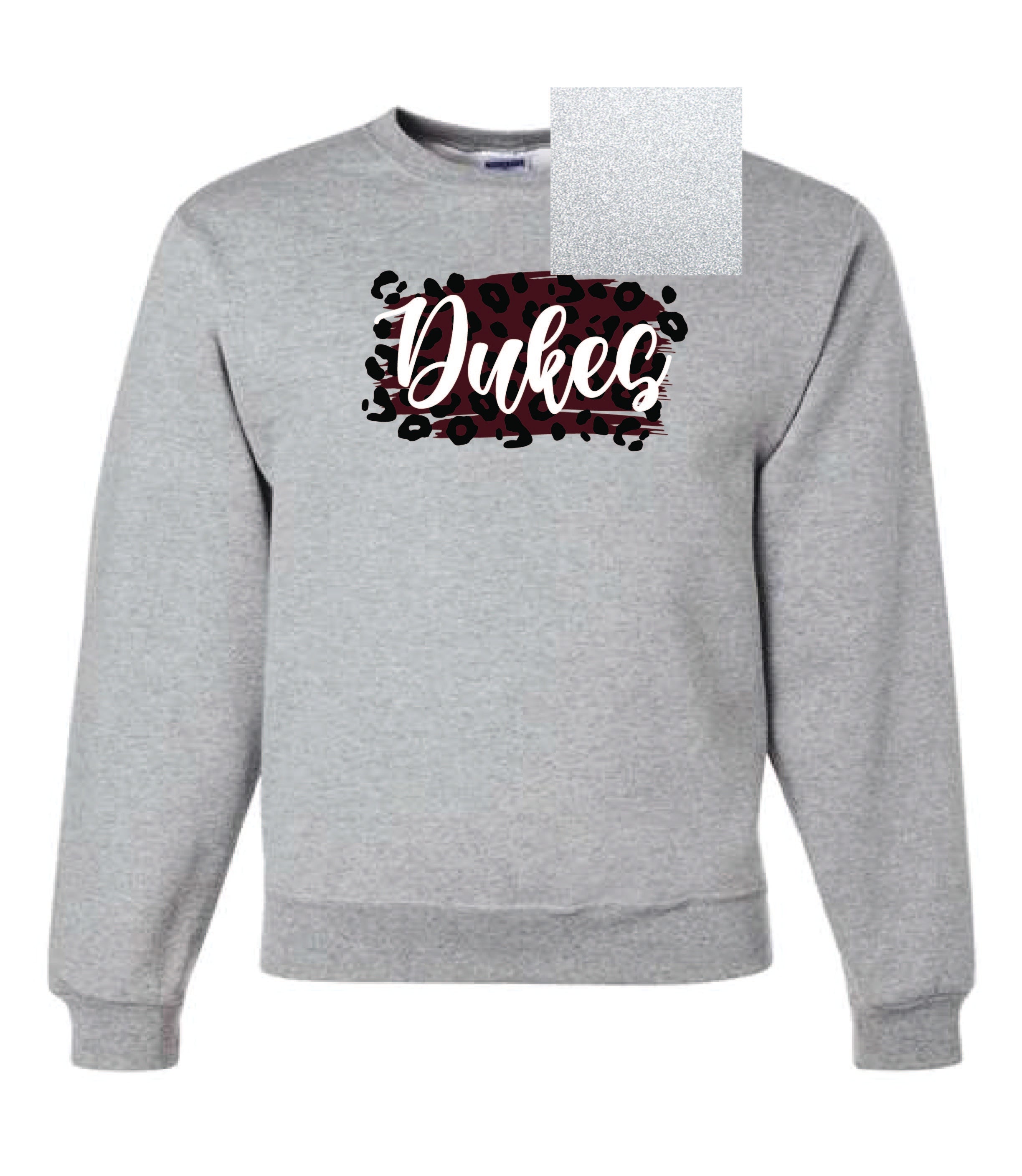 Image shows the Animal Print Dukes shirt with the white glitter swatch.