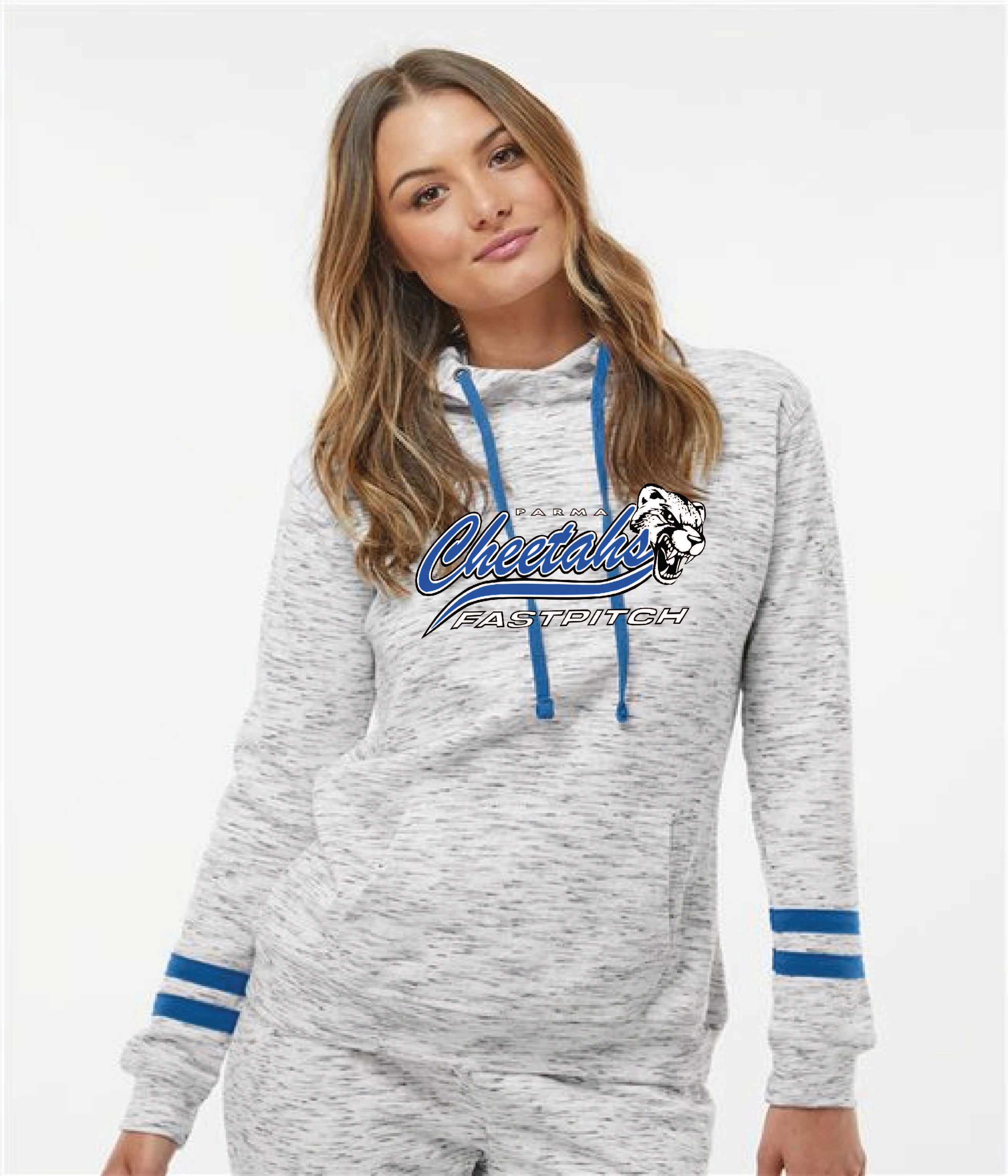 Women's marbled hoodie with blue stripe